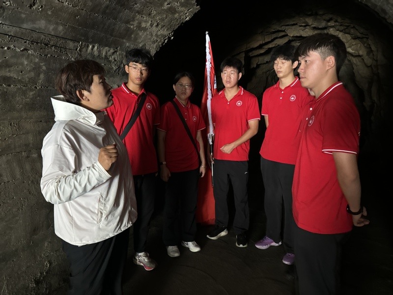 在工作人员引导下,团队重走被誉为“皖南红旗渠”的金岭洞。这条开凿于悬崖峭壁、长达1100余米的人工隧道,是皖南军民团结奋斗、不畏艰险的见证。触摸冰凉洞壁,凝视斑驳凿痕,队员们仿佛穿越时空,感受到建设者战天斗地的豪情与智慧,深刻领悟红色江山来之不易。