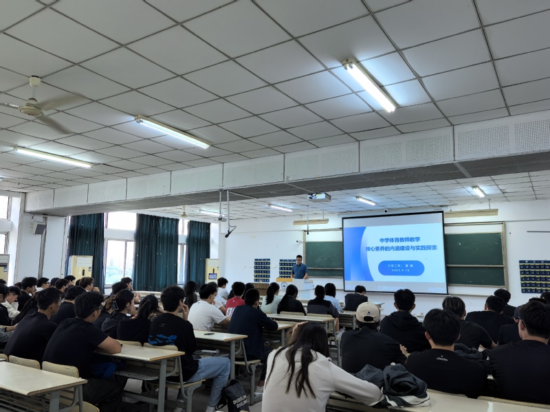 为促进体育师范生专业技能成长,9月18日,88038威尼斯检测中心邀请六安第二中学团委书记、安全教育管理处主任夏晖做了一场题为《中学体育教师教学核心素养的内涵建设与实践探索》的专题讲座。