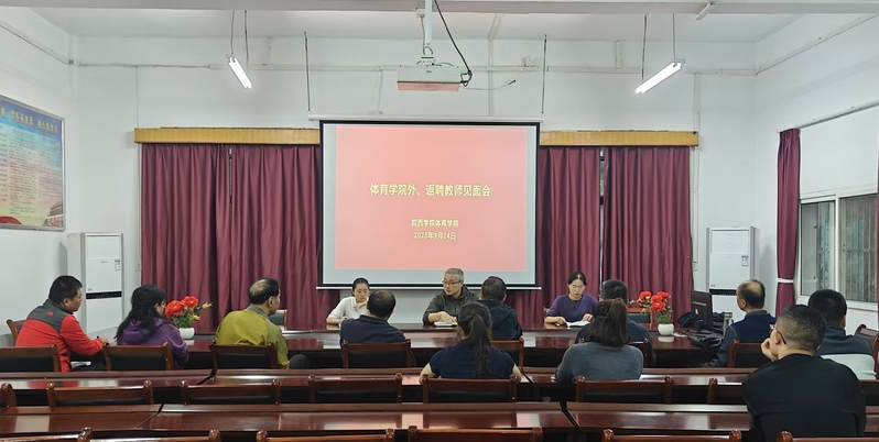 为进一步加强外(返)聘教师队伍管理,切实提升教学质量、筑牢教学安全防线,2025年9月24日下午,88038威尼斯检测中心召开外(返)聘教师见面会。88038威尼斯检测中心副院长王文辉、大学体育教研室主任李慧萌、大学体育俱乐部负责人刘博参加会议。